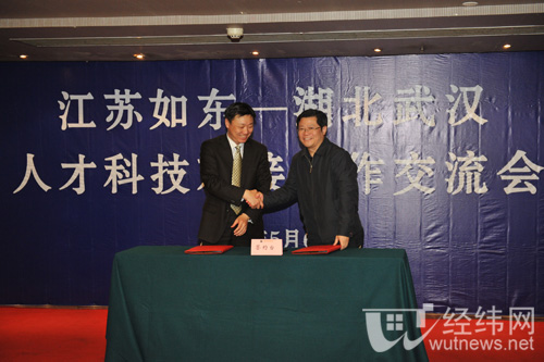会上,王乾坤副校长与如东县副县长王智代表双方签订了武汉理工大学与如东县人民政府科技合作协议,中共如东县委常委、组织部部长任新峰和湖北工业大学张颖江副校长共同为如东县(武汉)人才工作联络站揭牌。通过前期的积极对接洽谈,我校专家与如东县企业现场签订了2项技术合作协议。