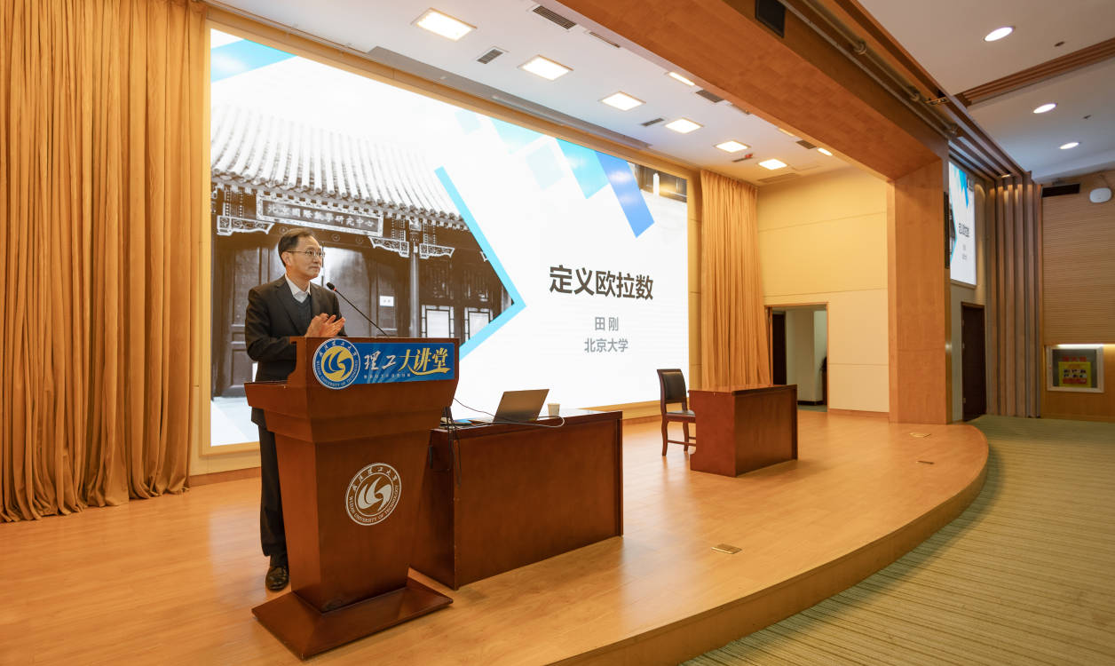 报告会上,田刚院士由师生所熟知的欧拉点边面公式入手,简述了欧拉公式的历史背景,引出了拓扑学中的欧拉示性数概念。围绕“欧拉示性数”,田院士从足球的形态出发,过渡到三维空间中的任一曲面的欧拉示性数,并逐步深入到高维多面体的欧拉示性数,以及在一般的拓扑空间和流形上如何定义欧拉示性数,最后介绍了他与李骏、阮勇斌等人在该研究领域合作的研究成果。田院士的报告深入浅出,让师生对“欧拉示性数”这一数学概念有了深刻的了解,激发了青年学生追寻数学家足迹,勇攀登数学高峰,推动基础学科发展,服务科技强国。