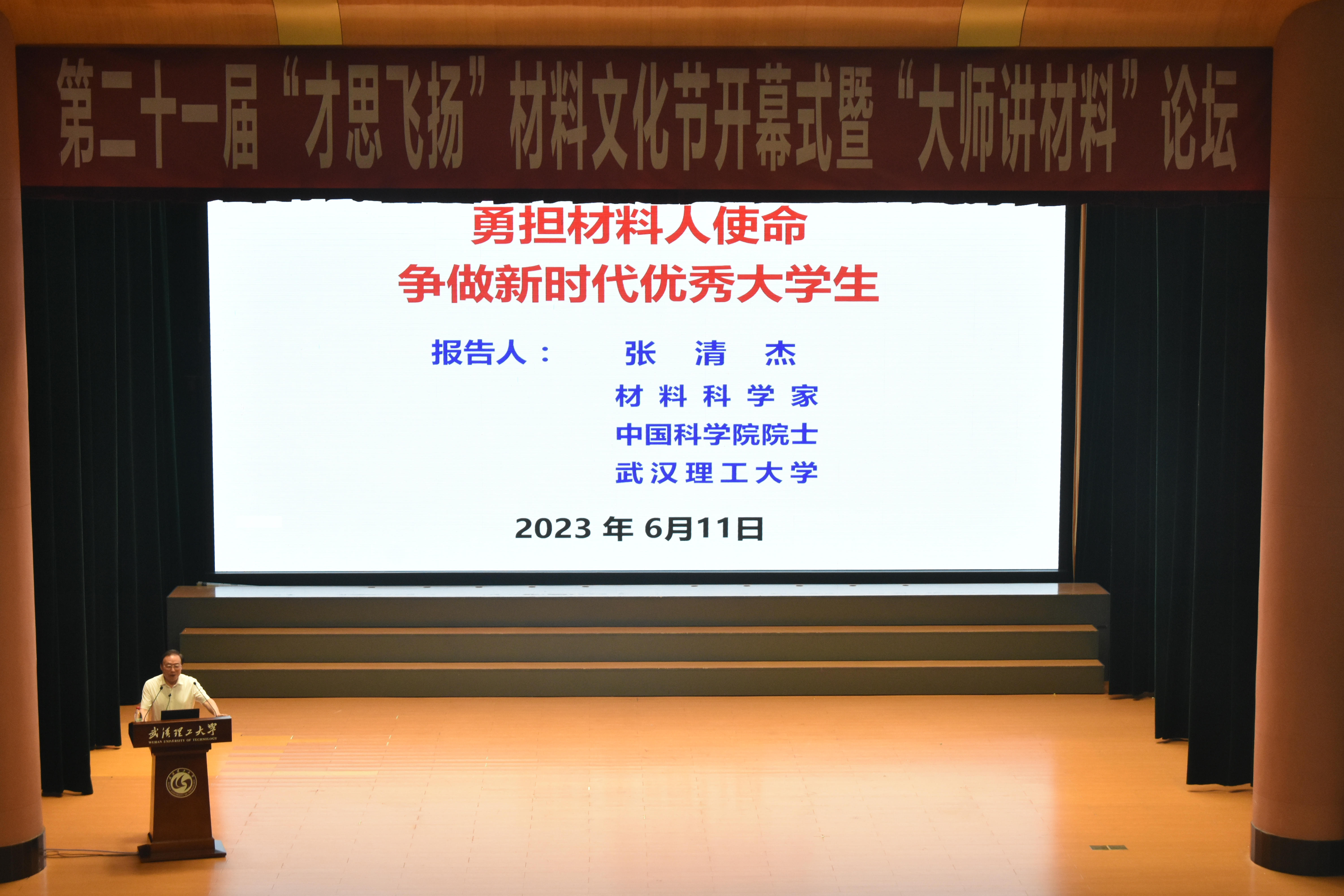 仲夏时节,万物丰茂,6月11日上午,“大师讲材料”论坛暨院士走进本科生课堂第4期在西院大礼堂隆重举行。中国科学院院士张清杰教授受邀主讲《勇担材料人使命,争做新时代优秀大学生》报告,材料学科本科新生、研究生党支部成员,湖北省鄂州高中、湖北黄石市第二中学等百余名高考生齐聚一堂,此次讲座由材料科学与工程学院麦立强院长主持。论坛同步在蔻享学术、科研云、新威智能APP上直播,线上覆盖累计达4万余人次。