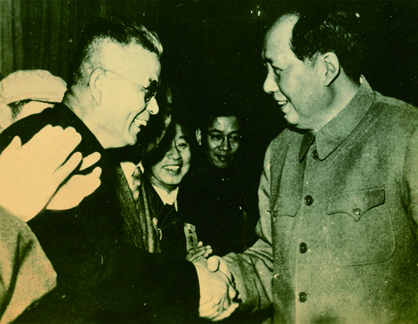 这一时期,他为新生的人民政权,为武汉市的科学文化建设奔走效劳,成为我国知名的社会活动家。作为武汉市人大代表,湖北省政协常委,第三、四届全国政协委员,第一、二届民建中央委员,他三次受到毛主席的亲切接见。第三次便是在1961年,留下了毛主席与他握手的珍贵历史影像。