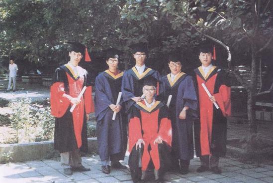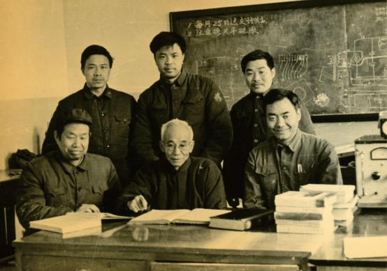 1981年冯修吉教授和硅工系领导及研究生合影(前排左一硅工系主任袁润章,中为冯修吉教授,右为硅工系总支书记陶景飏)