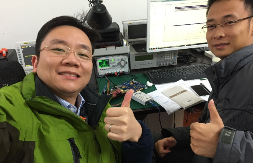 创业初期,张石(左)和创业伙伴在家中的实验室里开发产品