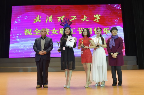 省教育工会副主席徐蓉为“湖北五一巾帼奖”、“湖北省女职工建功立业标兵”、“湖北五一劳动奖章”获得者黄妙华教授颁奖