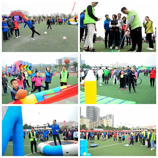 本次教职工趣味体育竞赛以“团结拼搏 快乐运动”为主题,分为集体项目和个人项目。集体项目有:一飞冲天、十拿九稳、急速冲刺、风雨同舟、七星连珠、陆地龙舟、和“鞋”奋进、智勇闯关8项,以分工会为单位组队参加,每项集体项目按单项积分计入趣味项目团体总分。个人项目有趣味投篮、趣味高尔夫、蹦床飞镖、愤怒的小鸟、铅笔套圈、九宫射门6项,自愿报名参加,成绩不计入运动会成绩。比赛当天秋风瑟瑟,寒意阵阵,还一度下起了小雨,却丝毫没有影响教职工们的参赛热情。场上运动员们团结协作、奋勇拼搏,场边观众们的呐喊助威声不绝于耳,掌声、欢笑声此起彼伏。比赛在当天圆满结束。