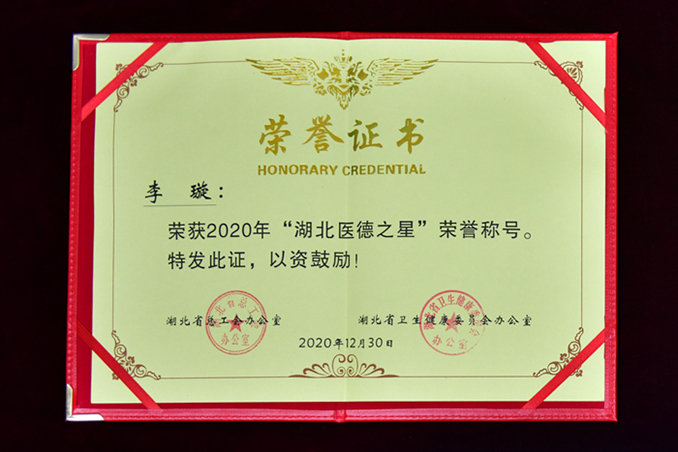 近日,湖北省总工会、湖北省卫生健康委员会公布了2020年“湖北医德楷模”“湖北医德之星”选树结果,我校医院中医科主治医师李璇获2020年“湖北医德之星”荣誉称号。