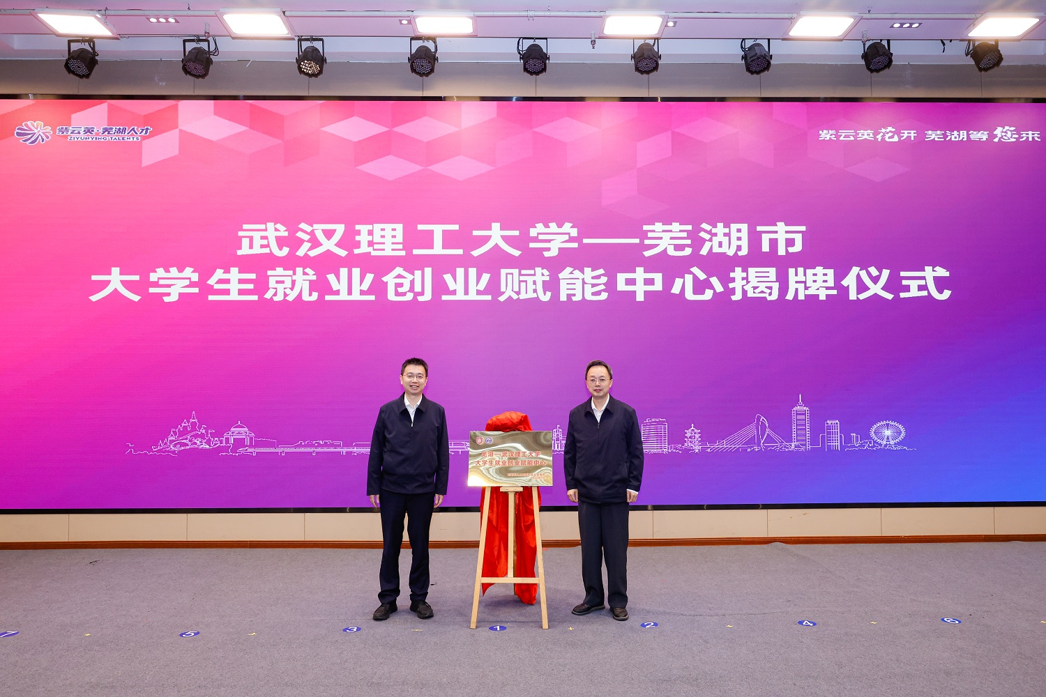 人才招聘宣讲会上,举行了学校与芜湖市大学生就业创业赋能中心揭牌仪式。
