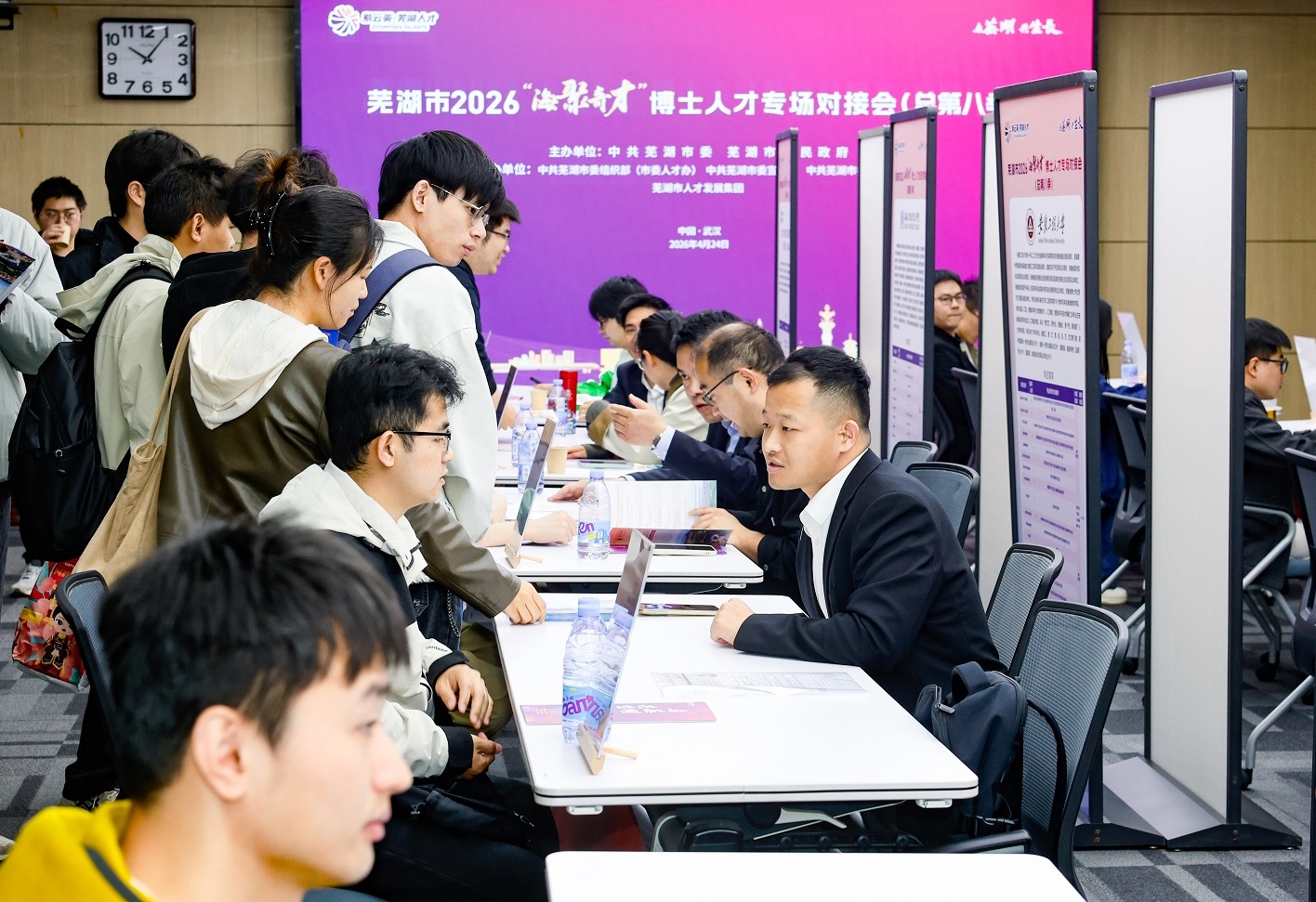 活动分别在学校南湖校区和西院会议中心举行。芜湖市委办公室,市发改委、科技局、人社局、文旅局、人才发展集团,市委人才工作局,在芜企事业单位代表,学校党政办、学工部、科技转化中心、材料学院、船海能动学院、汽车学院、机电学院、资环学院、信息学院、计算机智能学院、管理学院、光纤中心、硅酸盐中心等单位负责人参加相关活动。