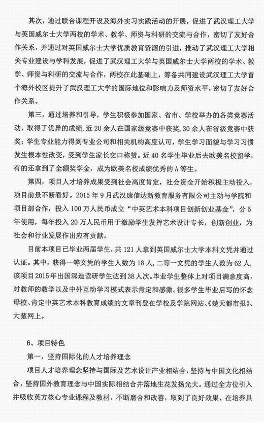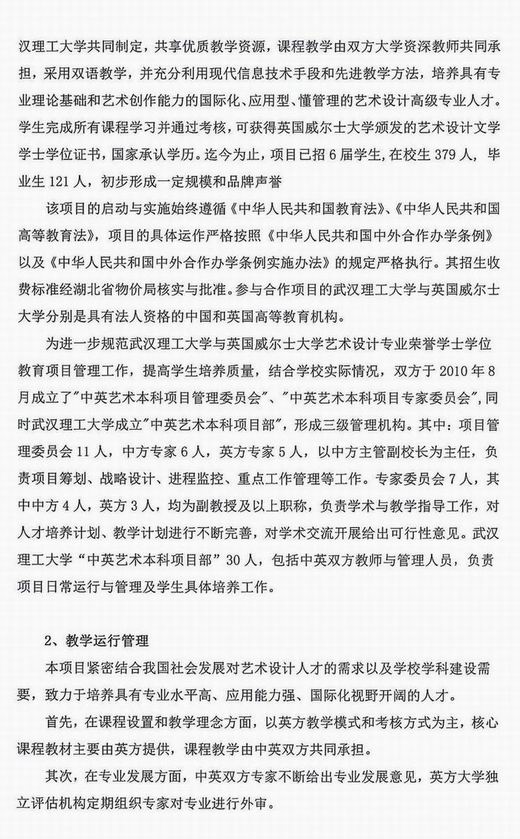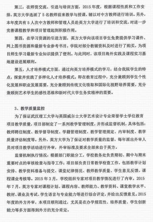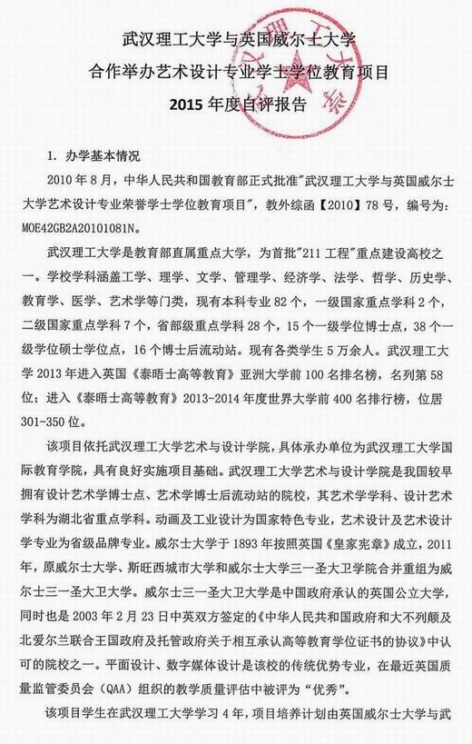 武汉理工大学与英国威尔士大学合作举办艺术设计专业学士学位教育项目2015年度自评报告