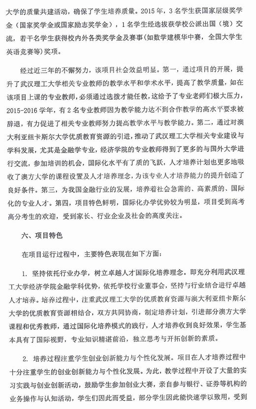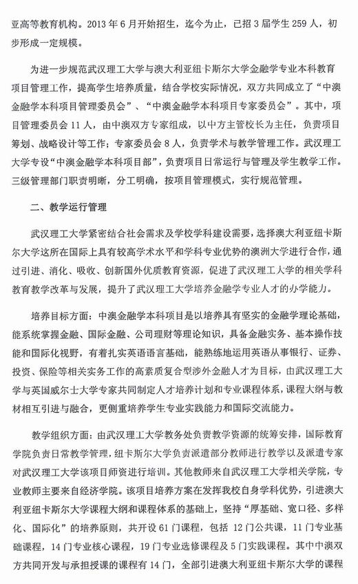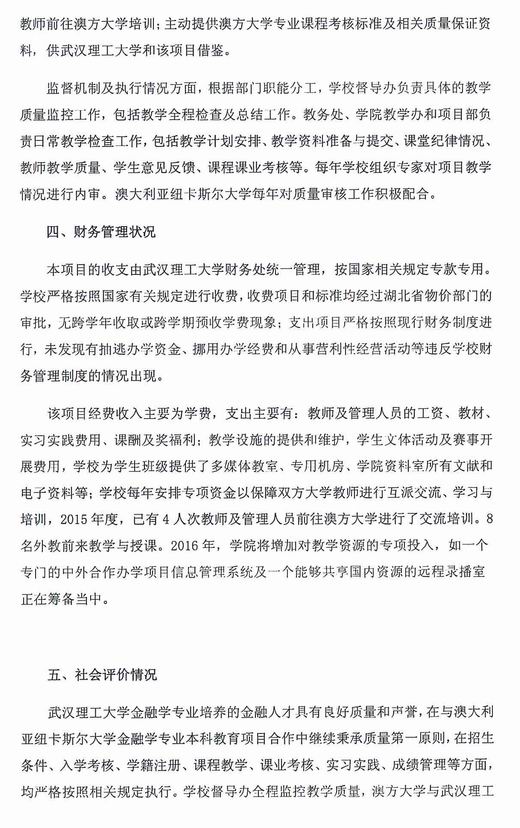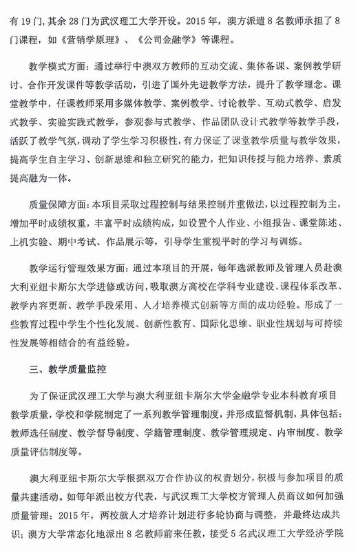 武汉理工大学与澳大利亚纽卡斯尔大学合作举办金融学专业本科教育项目2015年度自评报告