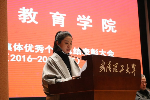 随后,戴福祥副院长宣读《国际教育学院关于表彰2016-2017学年先进集体、优秀个人》以及《国际教育学院关于表彰2016-2017学年学校奖学金获得学生》的表彰决定;李凌副院长宣读《国际教育学院关于表彰2016—2017学年学术、科研、竞赛优秀奖》的表彰决定。紧接着,学院优秀教师代表——蔡筱薇、先进集体代表——车辆gj1602班李世豪及优秀个人代表——数字媒体1602班陆冀豪先后发言。其中,师德标兵、来自HND项目部的蔡筱薇老师谈道,从她踏上三尺讲台的那一刻起,就立志做一名让领导放心、家长满意、学生欢迎的教师。这既是她当老师的初心,也是她一直追求的目标。蔡老师的发言赢得了在场师生的阵阵掌声。