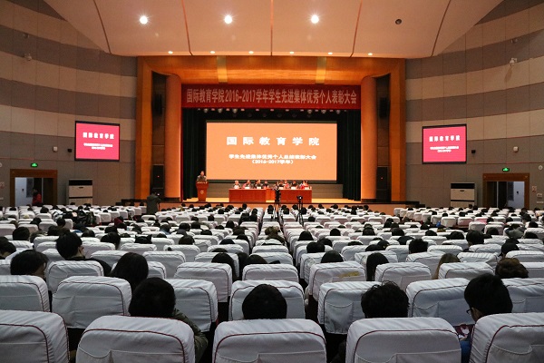 12月16日,国际教育学院2016-2017学年学生先进集体、优秀个人总结表彰大会在西院大礼堂隆重举行。黄小勇院长、徐向农书记、戴福祥副院长、李凌副院长、方胜新副书记以及学院各部门负责人作为领导和嘉宾代表出席了会议。参加本次表彰大会的还有学院师生代表及相关工作人员,活动现场气氛热烈,师生精神饱满。