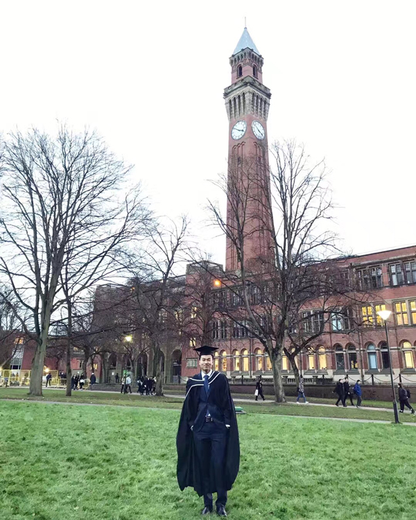 孙垚林,2012级HND毕业生,威尔士三一圣大卫大学二等一学生学位,伯明翰大学硕士毕业