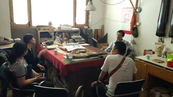 调研楚漆艺制作技艺(左一)