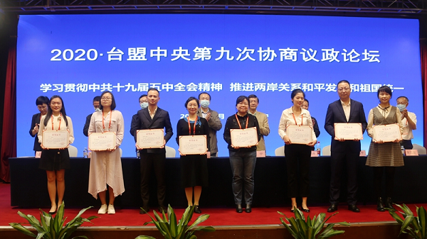 童彦婷在2020年台盟中央第九次协商议政论坛上演讲获奖(左起第五位)