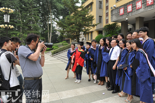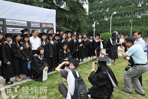 特别是参观展览的校领导与在场的毕业生们合影留念,毕业生们高兴地说,“和校领导合影,有种出席招待会的感觉。”适逢毕业典礼,毕业生们在参加毕业典礼前后纷纷前来参观作品展,并在展品前拍照合影留念,流露出依依不舍之情。