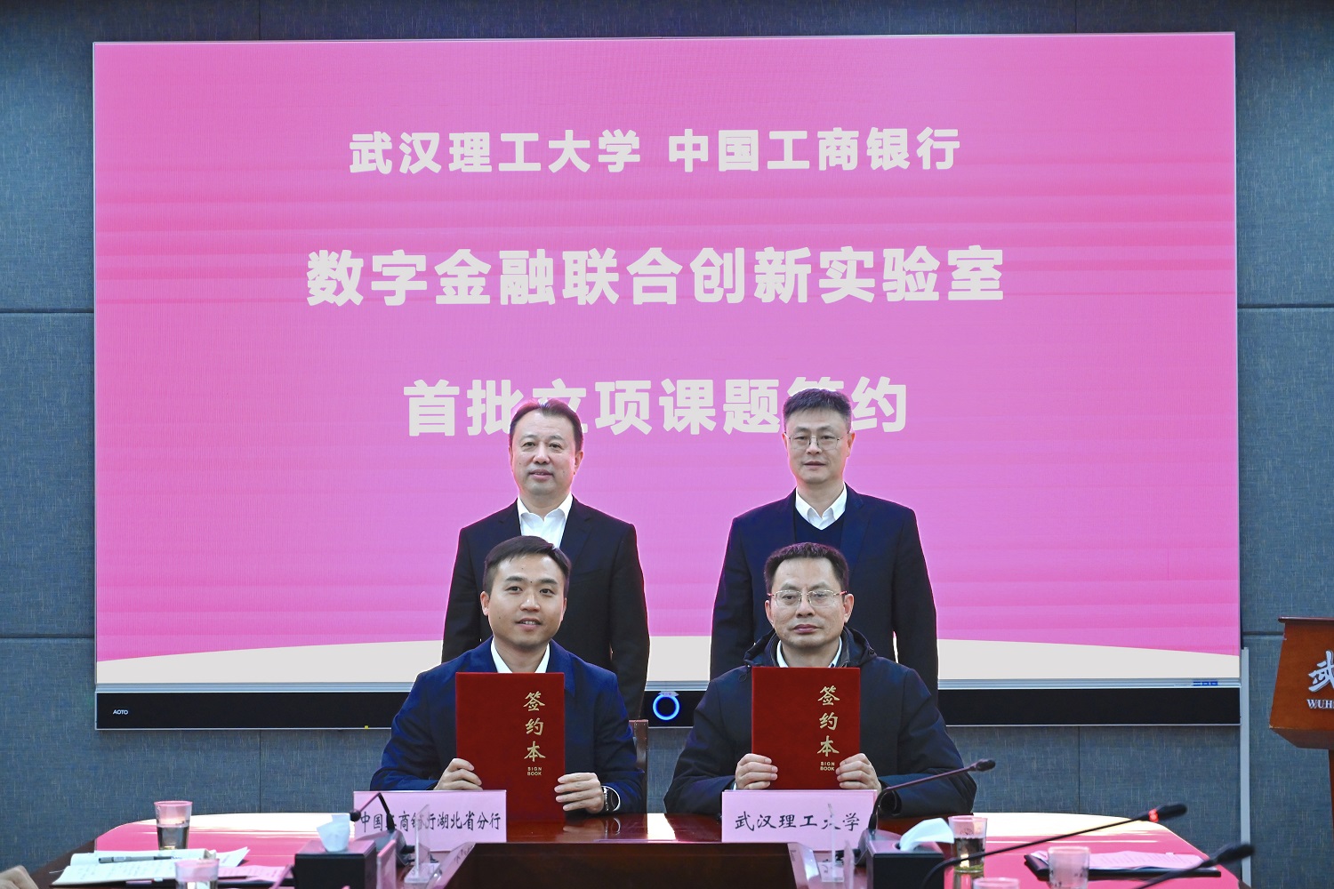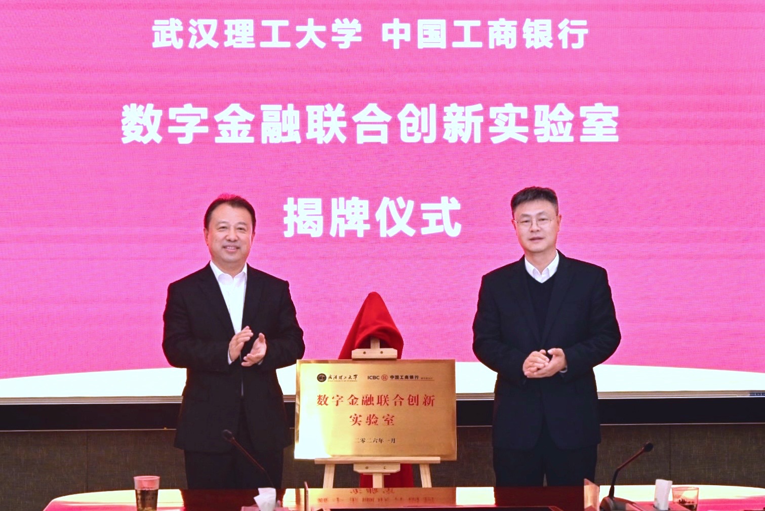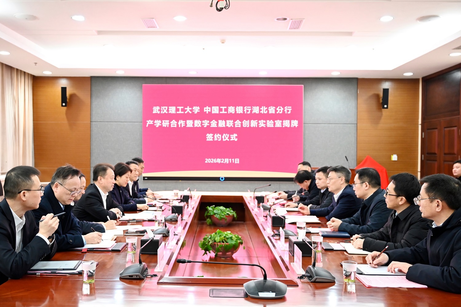新闻网讯 2月11日,我校与中国工商银行湖北省分行产学研合作暨数字金融联合创新实验室揭牌签约仪式在会议中心103举行。工行湖北省分行党委书记、行长毛卫东,副行长赵静,校长王发洲,副校长沈革武出席。校党委副书记李潮欣主持仪式。
