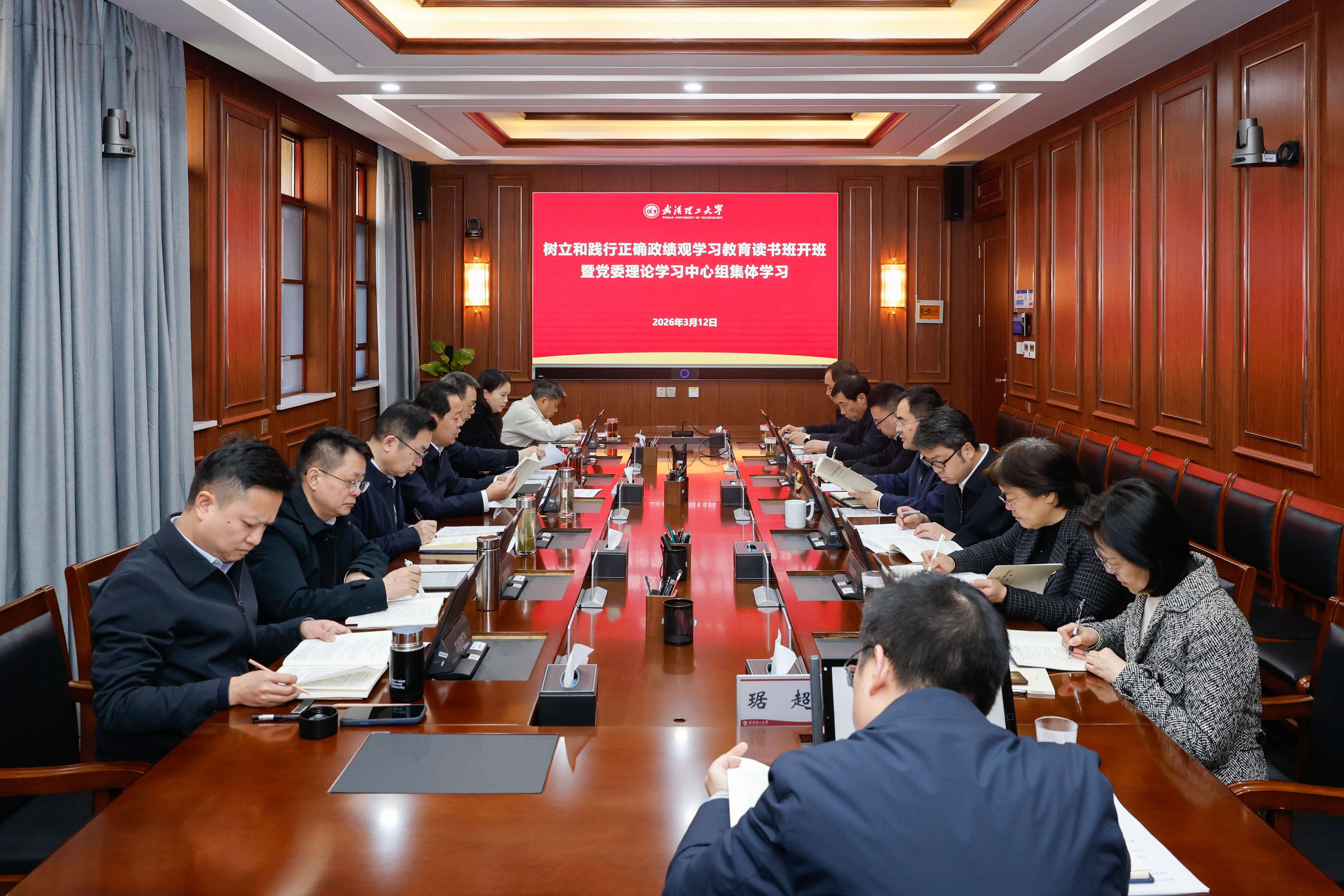 新闻网讯 3月12日上午,校党委理论学习中心组开展树立和践行正确政绩观学习教育读书班开班暨党委理论学习中心组集体学习,聚焦“树立和践行正确政绩观,奋力实现‘十五五’良好开局”主题,深入学习领会《习近平关于树立和践行正确政绩观论述摘编》《让愿担当、敢担当、善担当蔚然成风》《关于新时代立德树人工程的实施意见》以及《中国共产党思想政治工作条例》等内容。校党委书记孟芳兵主持集体学习,校党委理论学习中心组成员参加学习。