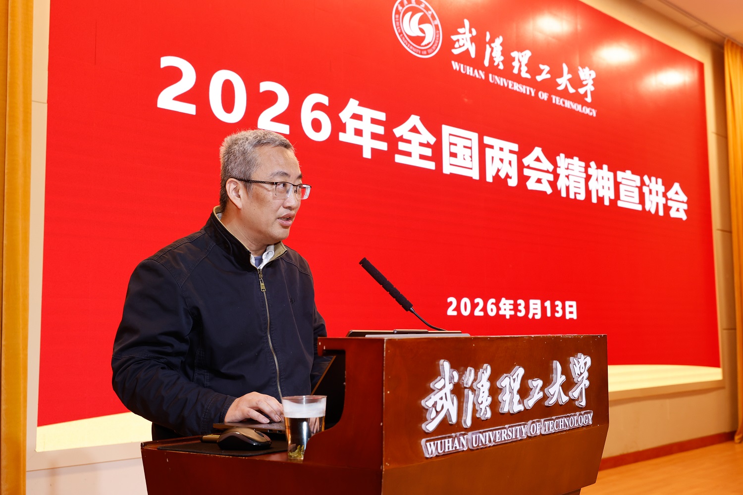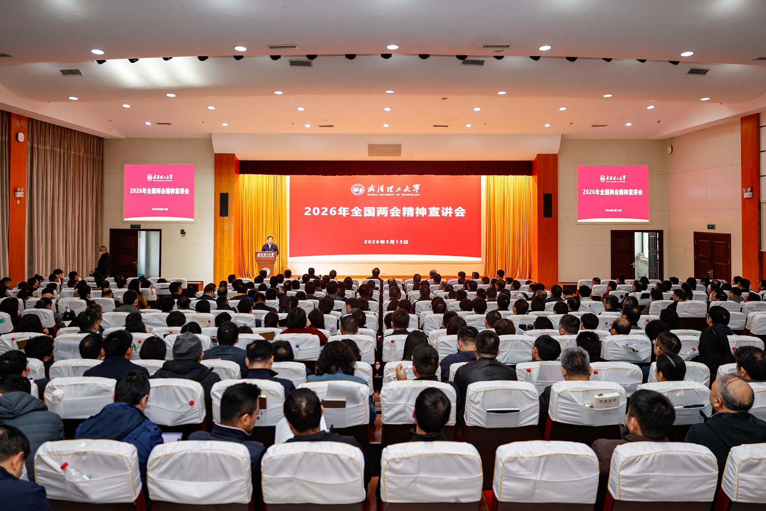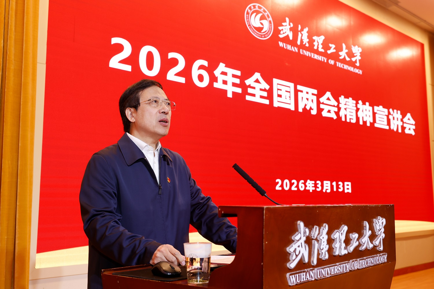 新闻网讯 3月13日上午,2026年全国两会精神宣讲会在会议中心301举行。全国政协委员、原校党委书记、校务委员会主任信思金,全国人大代表、艾克斯马赛学院执行院长孙涛垒为师生传达习近平总书记重要讲话及全国两会精神。校党委书记孟芳兵主持大会。