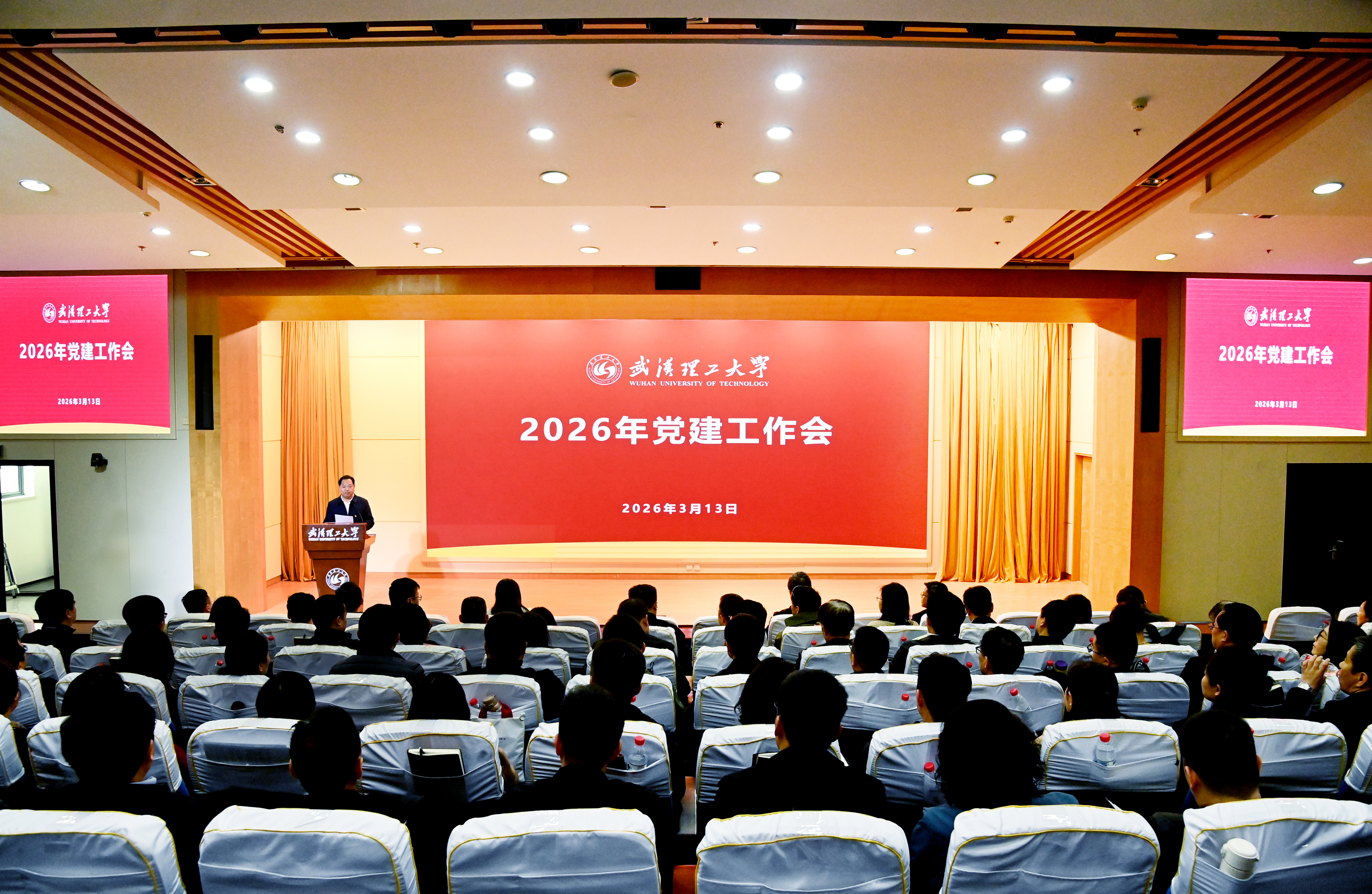 新闻网讯 3月13日下午,学校2026年党建工作会在会议中心201报告厅召开。会议聚焦“十五五”开局之年学校事业高质量发展,全面部署全年党的建设工作重点任务。教育部党建工作联络员赵雪梅,校党委书记孟芳兵,校党委副书记刘春江,副校长沈革武,校党委副书记、纪委书记李金发,校党委副书记李潮欣出席会议。